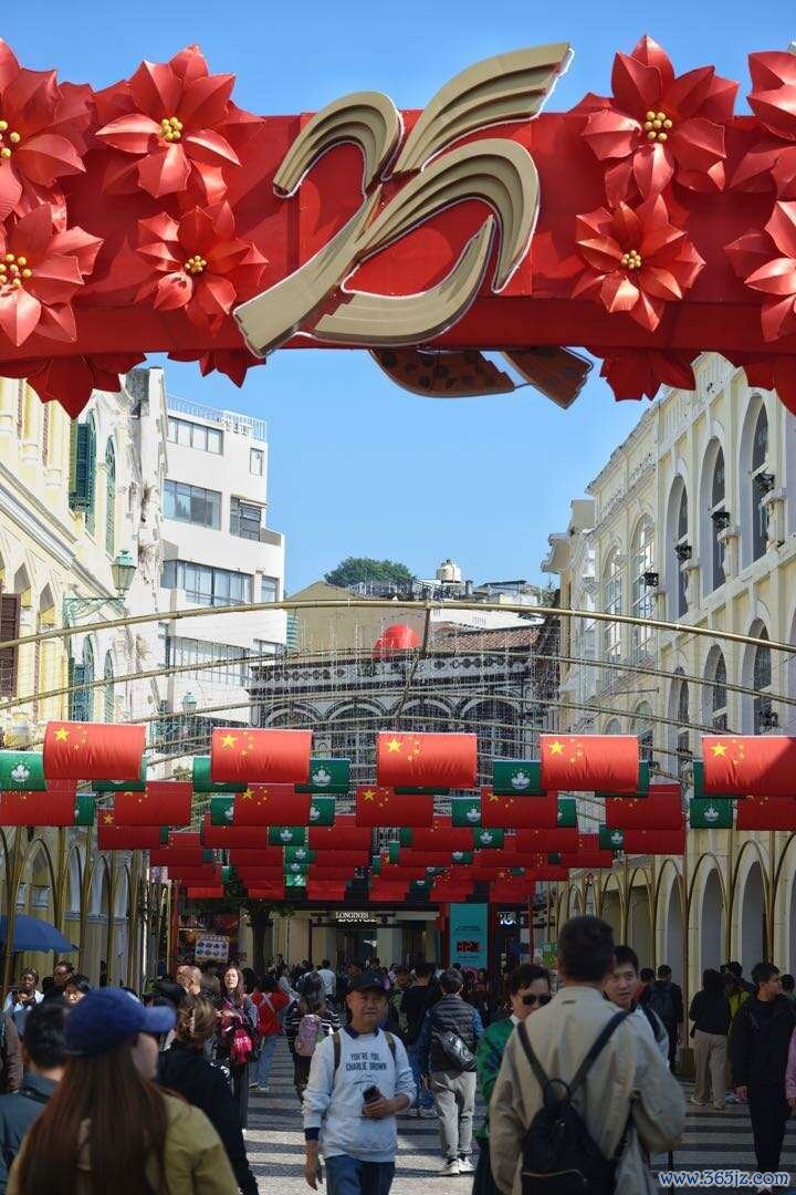 在澳门议事厅前地,“25”字样的拱门造型背后,吊挂着一长排娟秀的五星红旗和澳门特戋戋旗。这些地标见证了澳门的历史与成长,更将纪录澳门好意思好的将来。