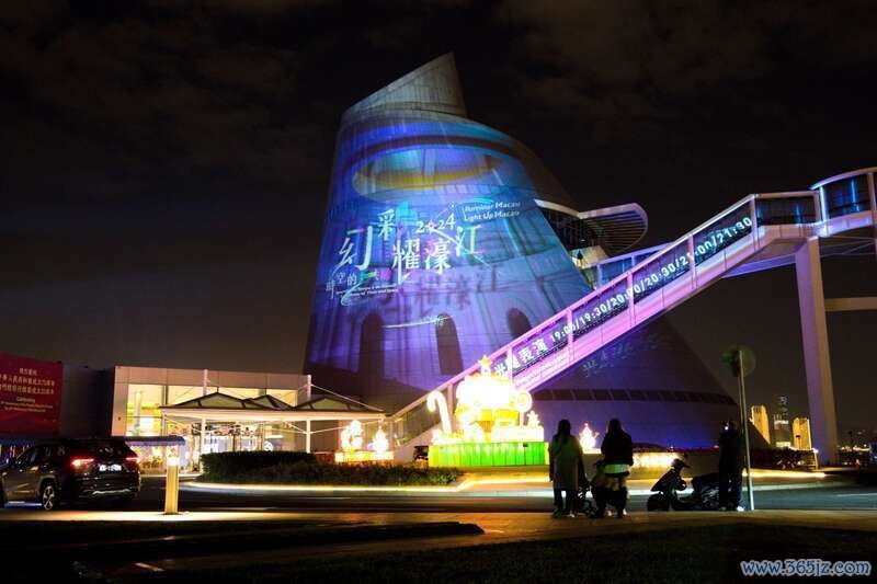 12月16日晚,澳门官也街景点前,“2024幻彩耀濠江”光影秀在建筑上打出“75”、“25”字样,标记着新中国建树75周年及澳门回来故国25周年。中青报·中青网记者 宋继祥/摄