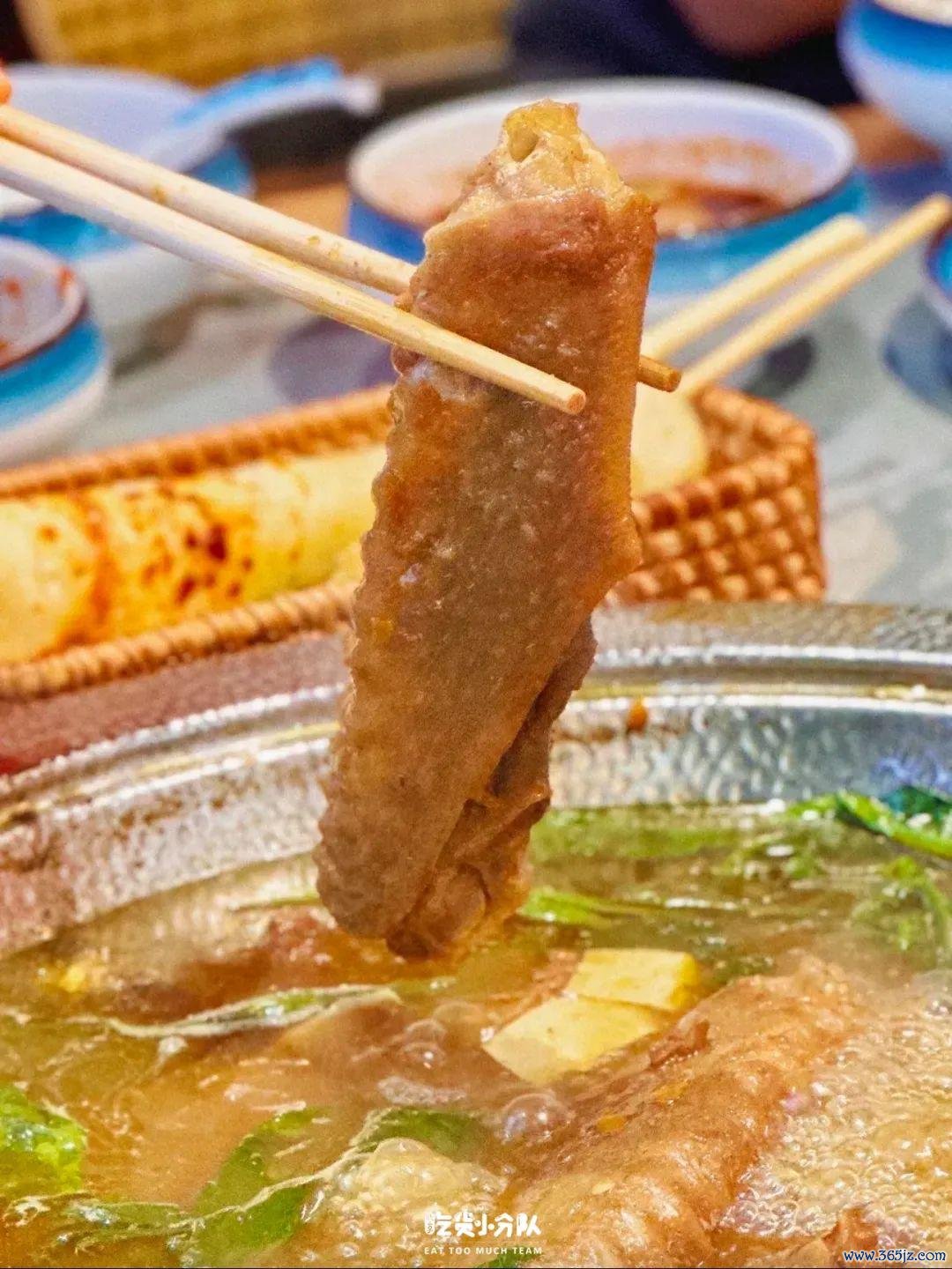 重庆开来的串串店,对重庆老店的规复度极高:现炒底料+小土碗牌号菜+别家稀有的串串+古早味环境。用的是重庆暖锅的同款牛油锅底,锅底上桌现炒。店里的菜品以小土碗菜为主,耙牛肉、肥肠、鲜鸭血都很保举。