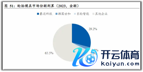 2023年,全球轮胎模具市集约莫为160亿元,豪爽科技贸易收入为37.9亿元,巨轮智能与韩国世和阔别为3.3亿元和3.6亿元。豪爽科技市占率在30%傍边,远超韩国世和和巨轮智能。