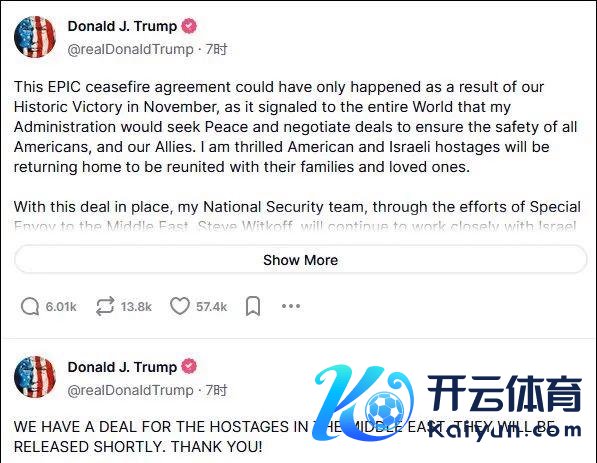 据路透社、好意思国播送公司(ABC)报谈,媾和契约这一紧要音书晓谕之际,好意思国总统拜登和候任总统特朗普同日发声,王人试图将效劳归功于我方。