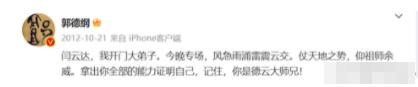 郭德纲提到张云雷时说他是云字科的大家兄,然则张云雷对此感到格外违抗,这可不是郭德纲粗率说说的。
