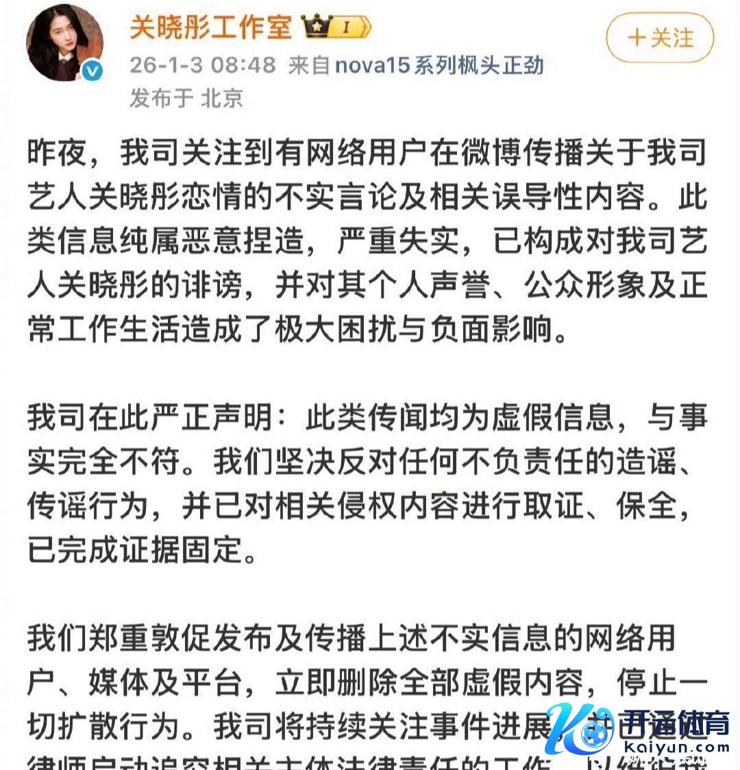最终,逼得关晓彤职责室也在夜深发声辟谣,否定有关传奇。