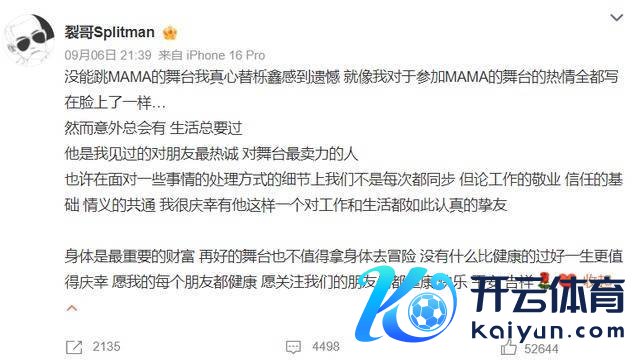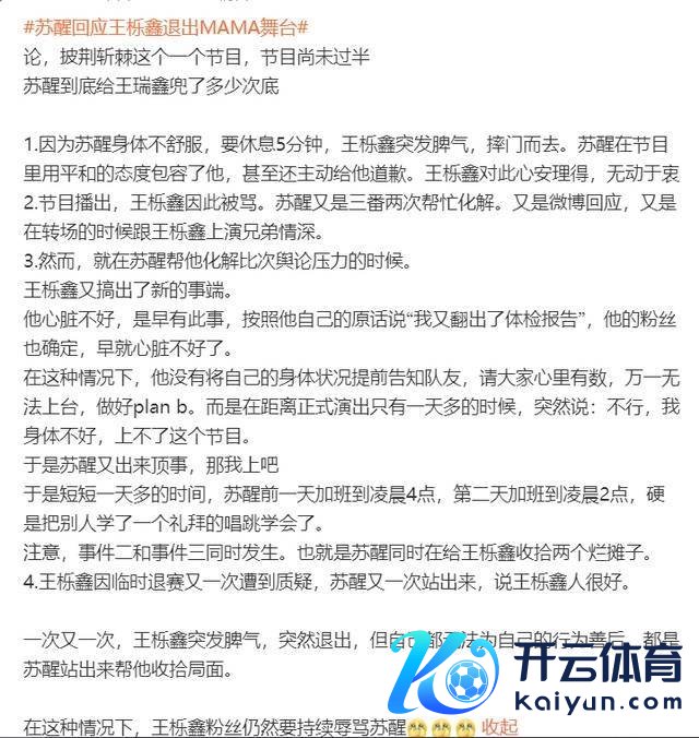 这么的情况出现,王栎鑫因为选定临时退赛,遭到粉丝的质疑,这个时候,苏醒站出来复兴,他暗意王栎鑫的东说念主很好,不测总会出现,但肉体才是最进军的钞票,再好的舞台也不值得拿肉体去冒险。